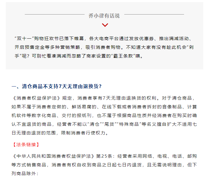 乔盛专业丨“双十一”商家“霸王条款”避坑指南