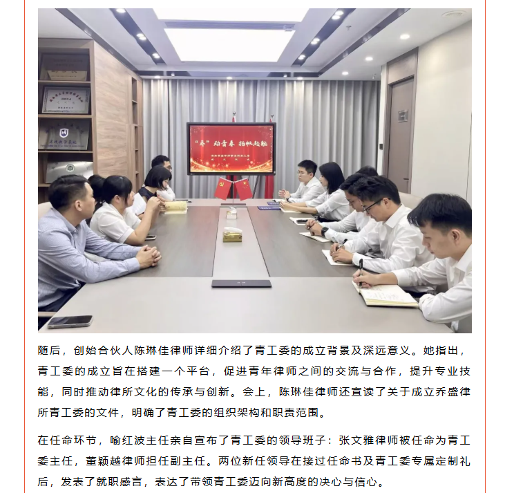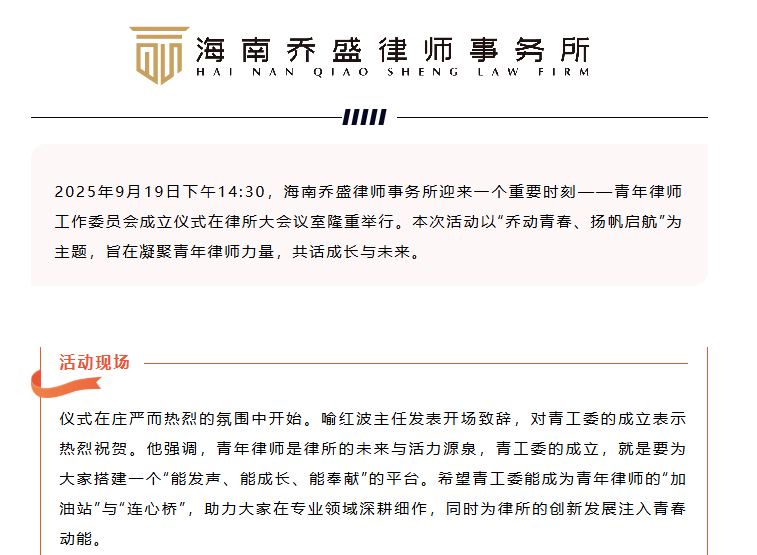 乔盛快讯丨“乔”动青春、扬帆启航!海南乔盛律师事务所青工委正式成立