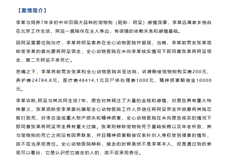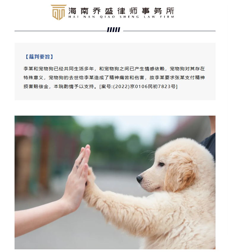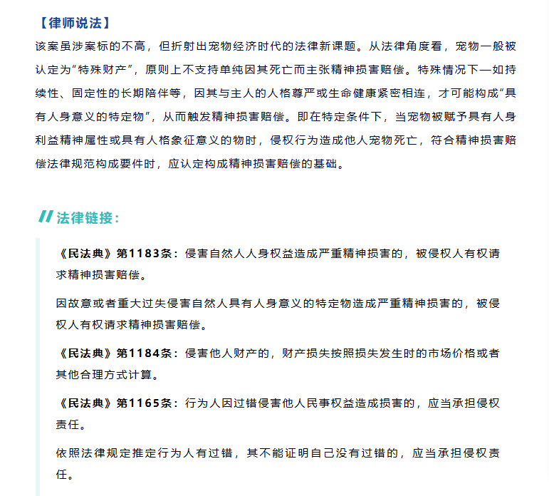 以案释法 | 爱宠因侵权死亡 ,主人能否主张精神损害赔偿?