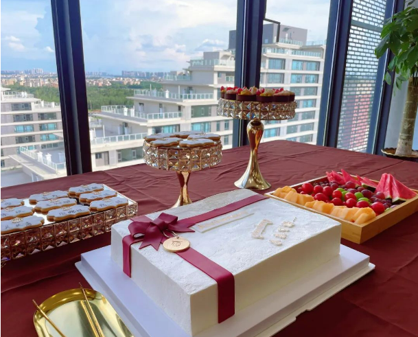 写上每个人名字的饼干和象征乔盛律所一周年的生日蛋糕,将乔盛律所一周岁的庆祝氛围拉满。在精致的糕点摆盘前,三位合伙人将手放在刀柄上,共同切下象征着律所成长的蛋糕。每个人品尝着蛋糕的甜蜜,在这令人难忘的时刻,共同许下对乔盛的美好祝愿。
